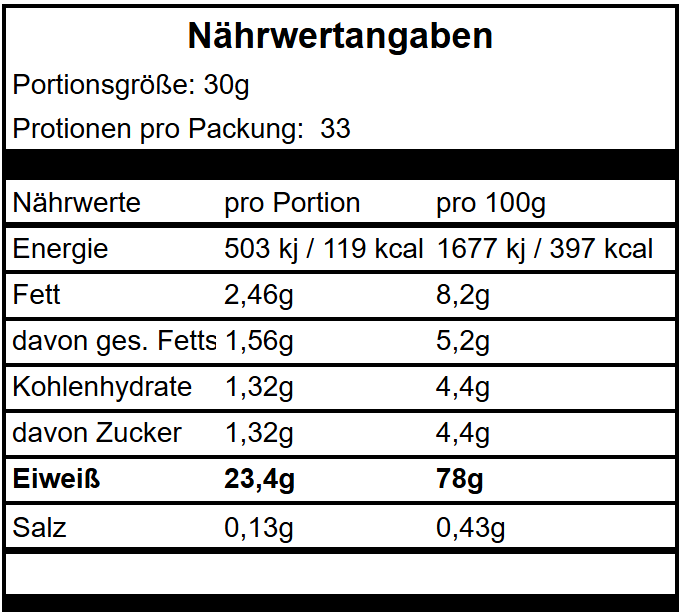 - Hochwertiges Molkenproteinkonzentrat (Whey)