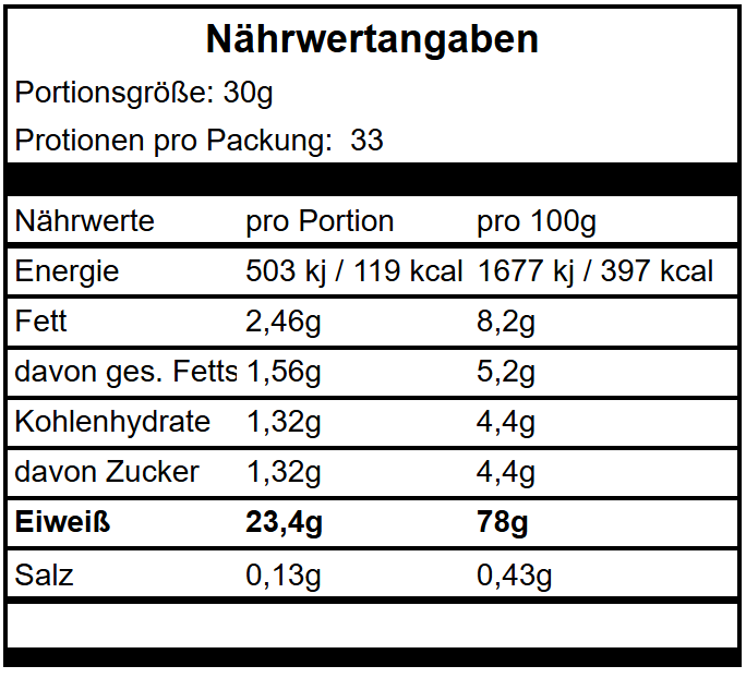 - Hochwertiges Molkenproteinkonzentrat (Whey)