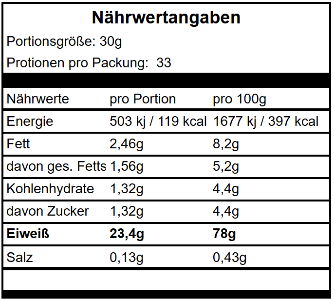 - Hochwertiges Molkenproteinkonzentrat (Whey)